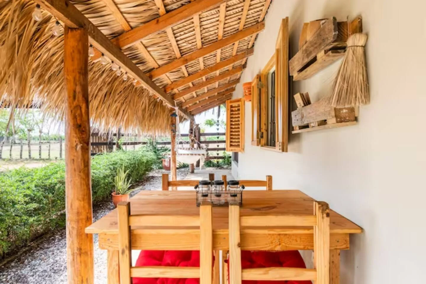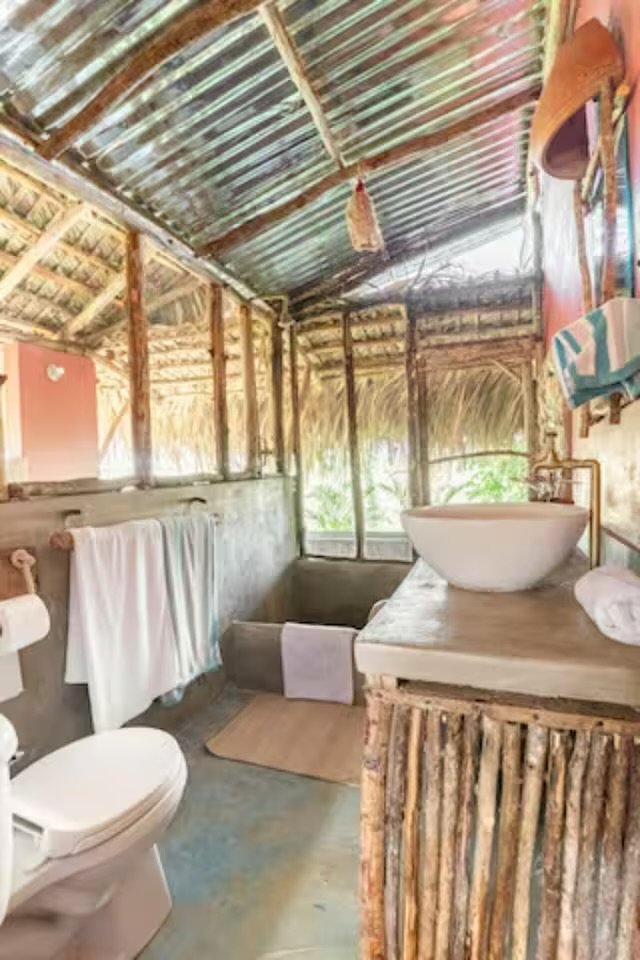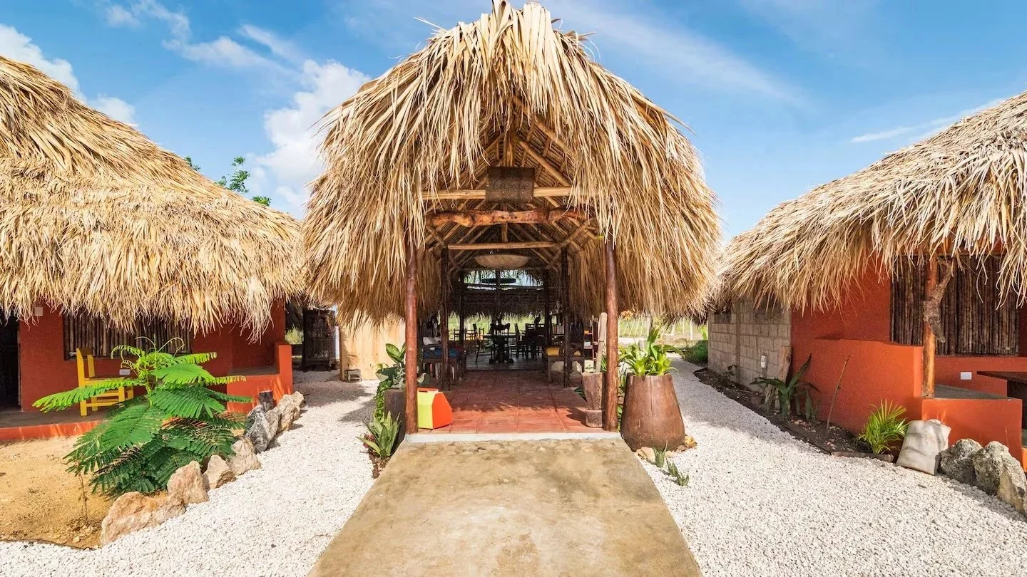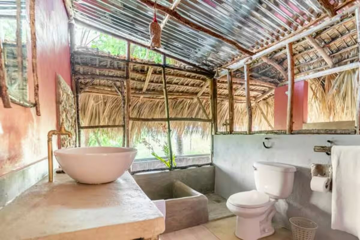 Our Rancho & Retreat is a mix of Dominican country-and Taino housing style. Rustic and unique. We offer 1 country house “La Ciguapa” with separate entrance, 2 bedrooms, 1 bath, living room, big kitchen, its own patio and outdoor area, which can sleep 4 people. The Taino village "Quisqueya" consists of 2 villas with 2 rooms each and the common area "Casabe" where you can enjoy breakfast, snacks or a coffee. All rooms come with a full-size bathroom including a Taino style tub with stone waterfall and hot water in open air, surrounded by nature. Front balcony, seating area, chaise lounge, its own terrace/patio to the back, hammock, workplace, private. We call them "double shot" rooms which will let you enjoy the most beautiful sunrise and sunset and we serve breakfast on your own terrace if you decide not to leave your room.