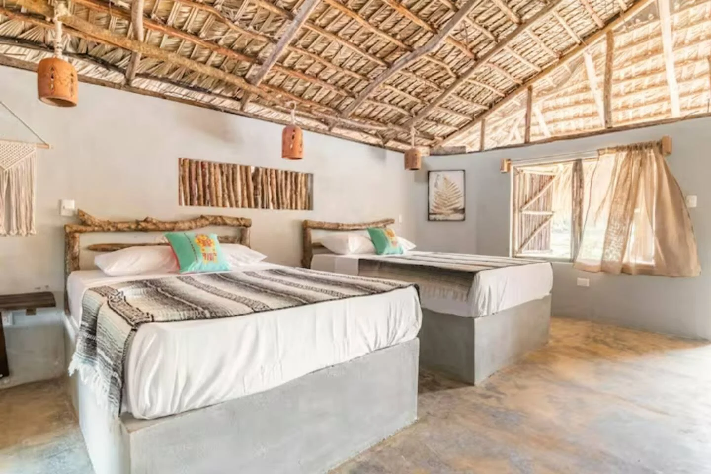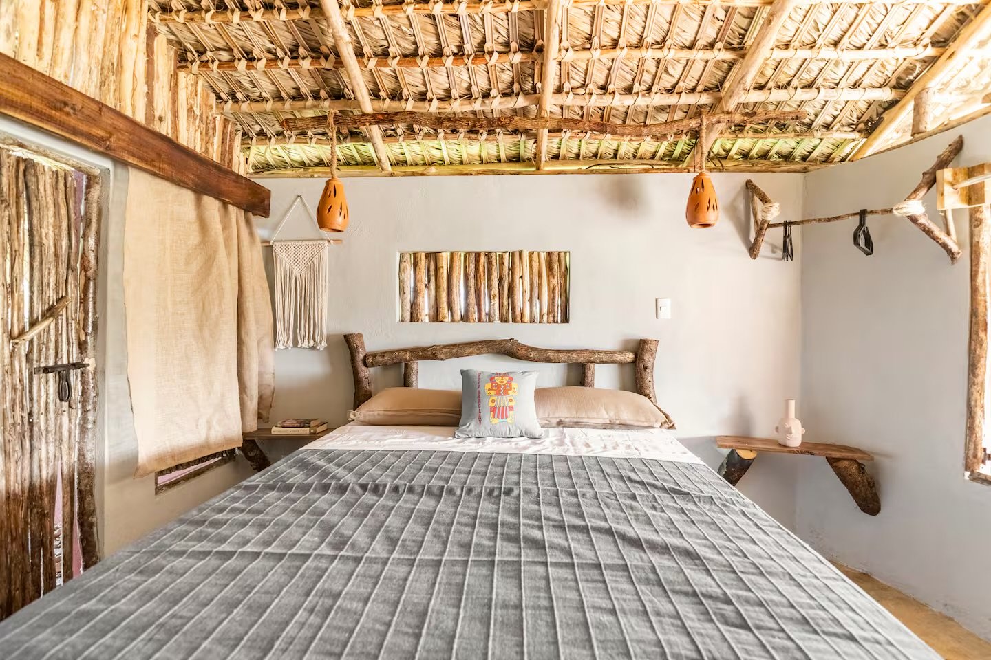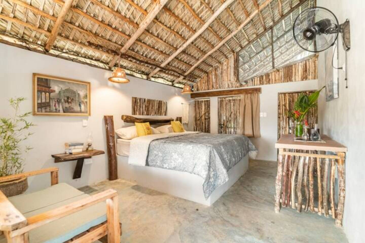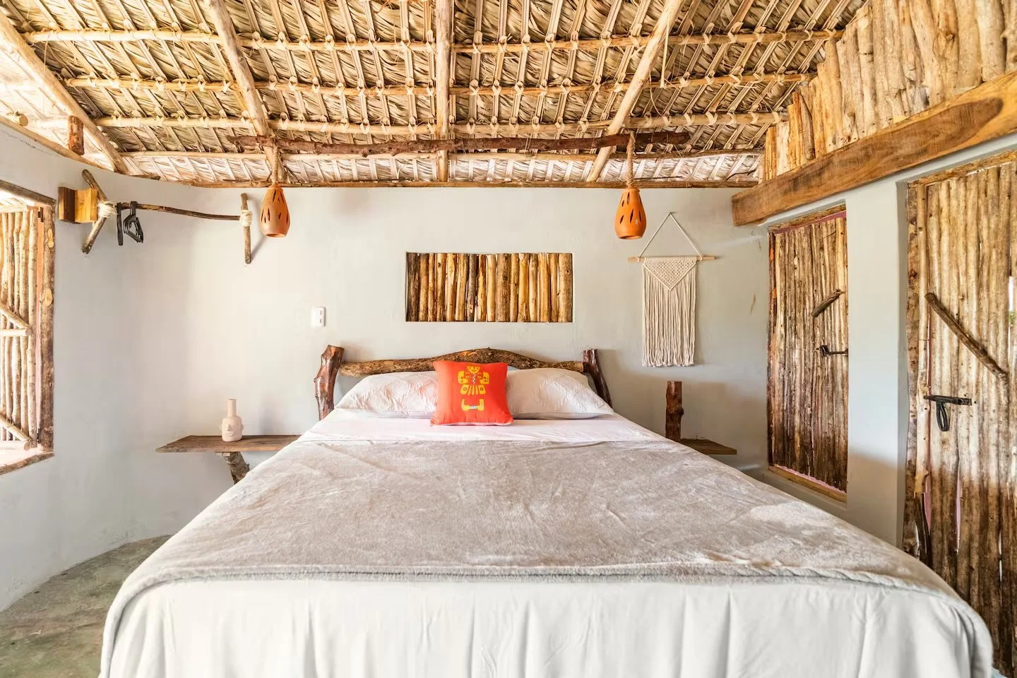Our Rancho & Retreat is a mix of Dominican country-and Taino housing style. Rustic and unique. We offer 1 country house “La Ciguapa” with separate entrance, 2 bedrooms, 1 bath, living room, big kitchen, its own patio and outdoor area, which can sleep 4 people. The Taino village "Quisqueya" consists of 2 villas with 2 rooms each and the common area "Casabe" where you can enjoy breakfast, snacks or a coffee. All rooms come with a full-size bathroom including a Taino style tub with stone waterfall and hot water in open air, surrounded by nature. Front balcony, seating area, chaise lounge, its own terrace/patio to the back, hammock, workplace, private. We call them "double shot" rooms which will let you enjoy the most beautiful sunrise and sunset and we serve breakfast on your own terrace if you decide not to leave your room.